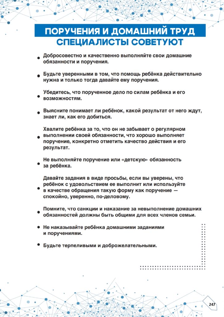 ✓ нельзя наказывать ребенка домашними заданиями и поручениями